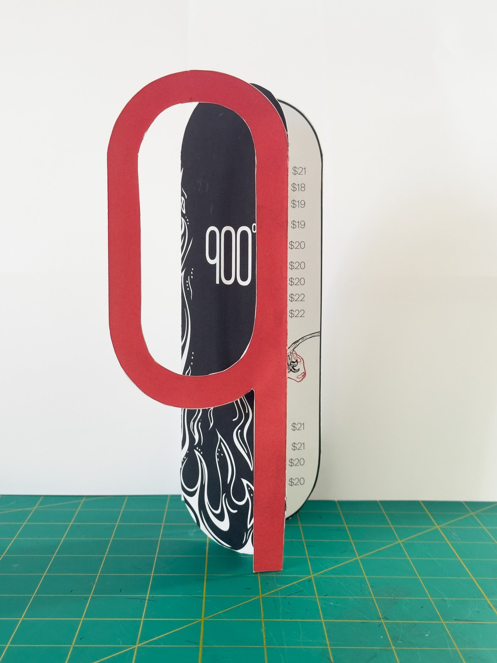 I wanted to create a unique form of the magazine that would really stand out. I made an accordion fold 900 shape from a custom typeface.